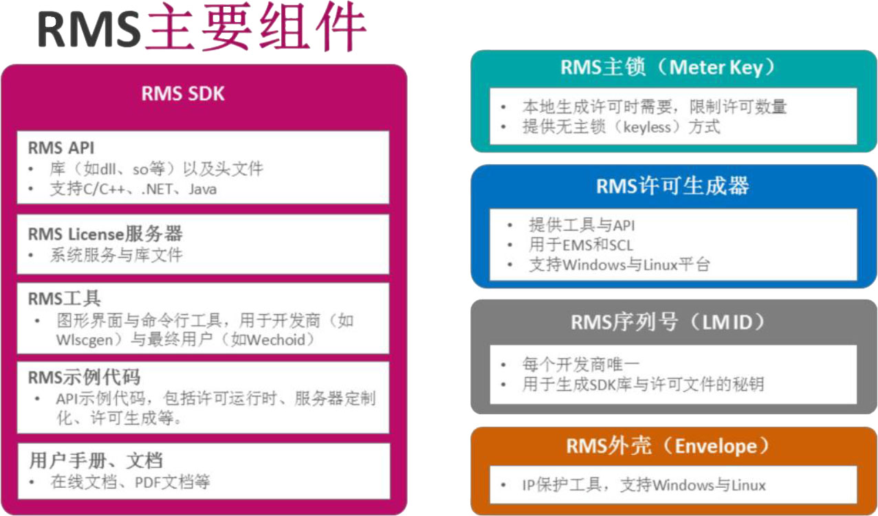 RMS重点关注可拓展和灵活的许可证管理,提供的方案两全其美,将企业级本地部署许可证执行与云端连接的优势结合在一起。 RMS支持连接或本地部署等任意部署模式,为采用传统激活方式或云租用许可证的本地部署应用的许可证进行激活或配置。通用运行时API提供高级授权执行选项,从而实现常见云端连接或断开连接的授权。 软件供应商和智能设备制造商可以将应用和/或许可证管理器的使用数据直接发布到云端并从云端生成使用报告,从而提供了软件的实时使用情况。